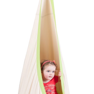 The children’s hanging nest JOKI PLANET turtle is made of super-soft organic cotton in soft pastel shades. It hangs from the ceiling like a cocoon and comes with a large comfy cushion. It is a perfect place for dreaming, reading or playing.