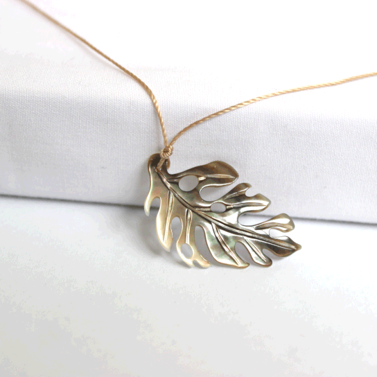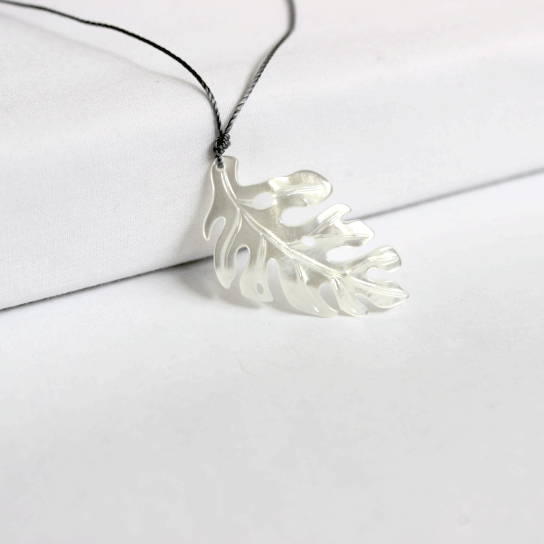 We are so excited to be featuring Leighton Lam’s Carved Shell Jewelry. These beautiful monstera necklaces are carved into black lip oyster. They come in either natural white or black hues. No two are alike so colors may vary slightly. Strung on a synthetic silk cord (durable) 17″ in varying colors.