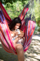 It is extra-large, enabling you to not only sit comfortably, but also recline. The DOMINGO lounger is made of weatherproof, fast-drying HamacTex®, so it can be left outside all summer. A typical characteristic of all hammocks manufactured in Colombia: the large number of suspension cords which ensure optimal weight distribution and therefore comfort and longevity.