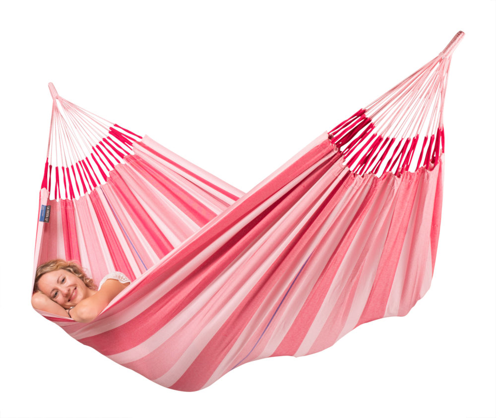 Weatherproof double hammock AVENTURA wild rose is perfect for sweet dreams outdoors.